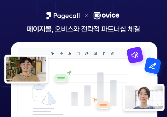 < 사진 제공 : 페이지콜 > 에듀테크 디지털 전환 솔루션 기업 페이지콜(Pagecall)이 글로벌 비즈니스 메타버스 플랫폼 기업 오비스(oVice)와 파트너십을 체결하고,차별화된 실시간 수업 기술을 제공하겠다고 밝혔다.