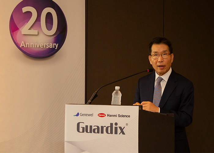 한상덕 제네웰 대표가 가딕스 출시 20주년 기자간담회에서 인삿말을 하고 있다. [사진 제공=제네웰]
