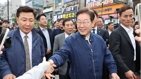 대법원이 이재명 더불어민주당 대선 후보의 공직선거법 위반 사건에 대해 유죄 취지로 파기환송 판결을 한 1일 이 후보가 전국 각지에서 민심을 듣는 ‘골목골목 경청투어’를 시작하며 경기도 포천에서 시민들과 만나고 있다. 5월 15일로 예정됐던 이재명 더불어민주당 대선 후보 공직선거법 위반 파기환송심 첫 재판이 대통령 선거일 이후로 미뤄졌다.