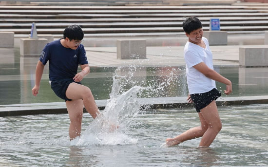 초여름의 날씨로 낮 최고기온이 20∼29도를 보인 지난 13일 서울 영등포구 여의도물빛광장에서 현장체험학습을 마친 중학생들이 물놀이를 하며 더위를 식히고 있다. (사진=연합뉴스) 여름으로 들어서는 절기 소만(小滿)인 21일,역대 가장 더운 5월 아침이 찾아왔다. 밤새 고온다습한 남풍이 대거 유입된 탓이다.
