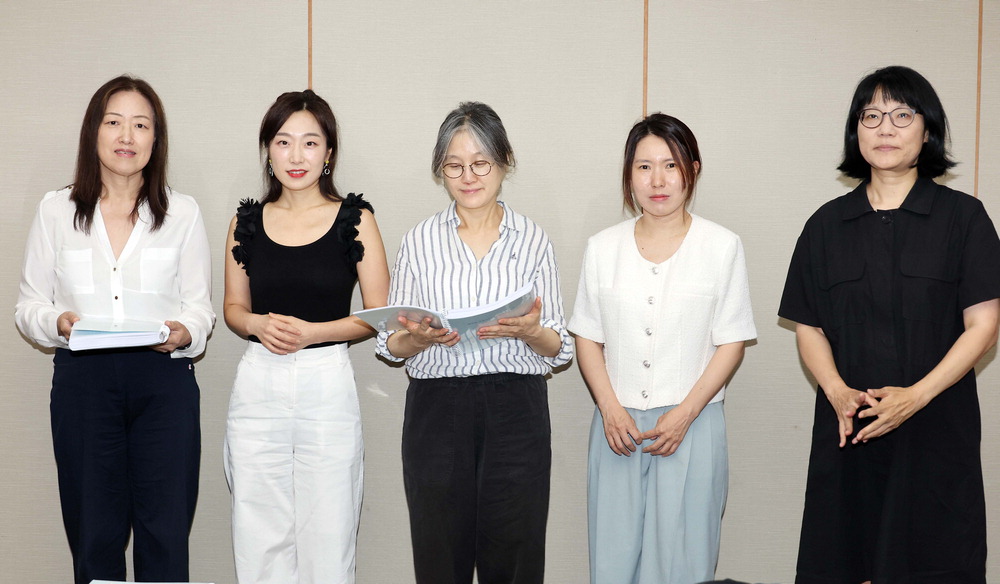 한국 동시대 최고의 단편소설을 뽑는 이효석문학상의 올해 심사위원들이 최근 서울 퇴계로 매일경제신문사에서 만났다. 왼쪽부터 강영숙·윤고은 소설가,심진경·이지은·김미정 문학평론가. 한주형 기자