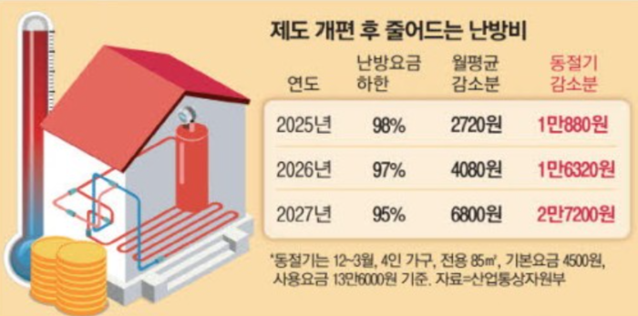 정부의 후속 제도 개편이 이뤄지면 전용면적 85㎡ 기준 4인 가구 난방비가 월 평균 6800원까지 내려가게 된다. 특히 12~3월 동절기에는 가구당 최대 2만7200원까지 난방비 부담을 덜 수 있을 것으로 예상된다.