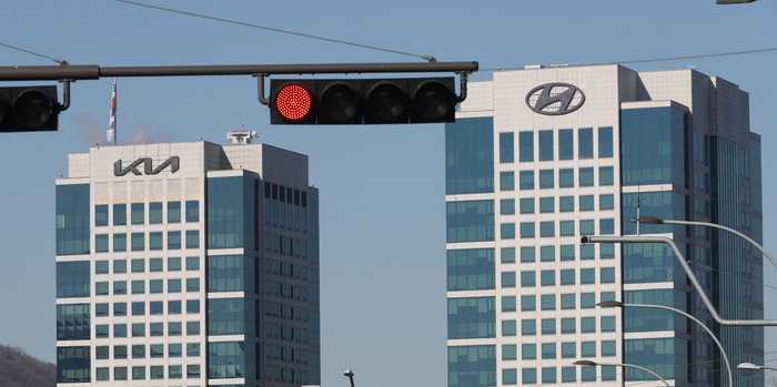 양재동 현대 기아차 본사 건물 앞 신호등이 빨간불로 점멸돼 있다. [이충우 기자] 조합원 2만7000여 명에 달하는 기아 노조가 30일 임금·단체협약 요구안을 논의하는 임시대의원대회를 시작했다. 기아 노조원 대다수는 임금 변동 없는 주 4.5일 근무제 도입을 요구할 것으로 보인다. 그룹사 노조들이 국내 최대 규모인 만큼 현대자동차그룹의 주 4.5일제 채택 방식이 국내 다른 대기업 임단협에도 영향을 줄 것으로 전망된다.