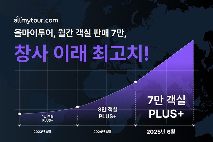 올마이투어는 2025년 6월 한 달 동안 총 7만 3604건의 객실을 판매해 전년 동월 3만 3509건 대비 두 배 이상 증가한 실적을 기록했다고 밝혔다. 올마이투어는 현재 전 세계 300만 개 숙소를 공급하고 있다.