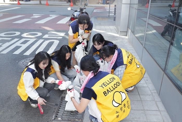 이들은 하수구(빗물받이)에 친환경 분필로 그림을 그려 쓰레기 투기에 대한 경각심을 일깨우는 ‘바다의 시작’ 활동을 펼쳤다. 또 노랑풍선 사옥(서울 중구)을 출발해 충무로역 인근 거리까지 약 1km의 거리를 걸으면서 담배꽁초와 생활쓰레기를 줍는 ‘플로킹’ 봉사활동도 전개했다.