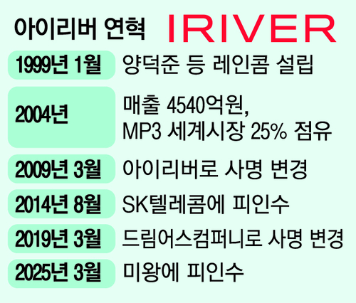 아이리버를 인수한 여환동 미왕 대표가 ‘제2의 도약’ 방안을 설명하고 있다. 김호영 기자 현재 3040세대가 학생이던 시절 ‘아이리버(IRIVER)’는 국민 브랜드였다. 당시 젊은층은 학교나 학원에서 MP3 플레이어로 음악을 들었는데,단연 인기 있는 브랜드가 아이리버였다. 삼성 출신 고(故) 양덕준 회장이 1999년 창업한 레인콤에서 만든 브랜드로,창업 5년 만인 2004년 매출액 4250억원,국내 시장 점유율 80%,세계 시장 점유율 25%를 달성하면서 K벤처기업 역사상 전무후무한 성장세를 기록했다.