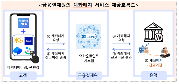 금융결제원의 계좌해지 서비스 제공흐름도. 금융결제원