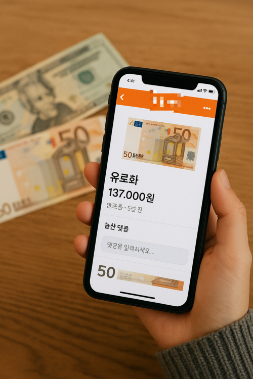 #B씨도 중고거래앱을 통해 유로 판매 게시글을 올렸다. B씨에게 연락해온 사람은 대면거래 10분전 B씨의 계좌로 원화를 입금했고,자신의 동생을 통해 유로화를 받아갔다. 하지만 이 역시 보이스피싱 피해금이었다.