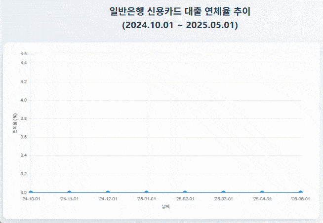 한국은행에 따르면 일반 은행의 신용카드 대출금 연체율은 지난 4월 3.6%에서 5월 4.2%로 0.6%포인트 상승했다. 이는 지난 2005년 5월의 5.0% 이후 20년 만에 가장 높은 수준이다.