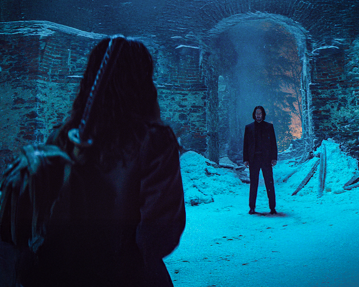 영화 ‘발레리나’의 한 장면. 다시 만난 존 윅(키아누 리브스·왼쪽)과 이브 마카로(아나 데 아르마스) 사이에 긴장감이 감돌고 있다. 판씨네마