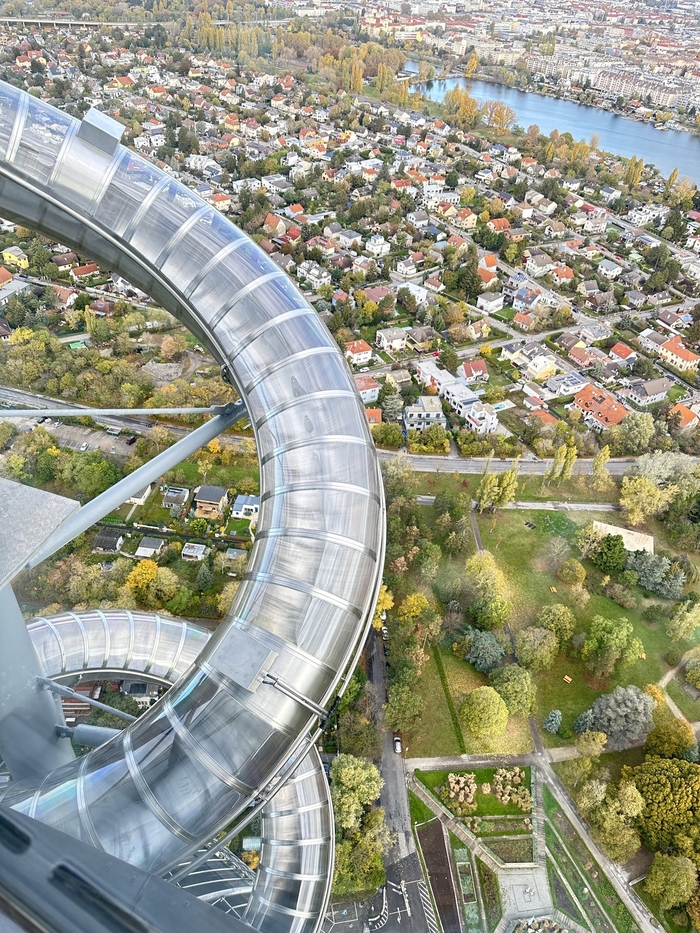도나우타워 미끄럼틀. /사진= Donauturm 도나우타워는 오스트리아의 수도 비엔나의 상징물이자 오스트리아에서 가장 높은 건축물로 전망대에서 도시를 관통하는 도나우 강과 비엔나 도시 경관,그 너머로 펼쳐진 자연까지 한눈에 조망할 수 있다.