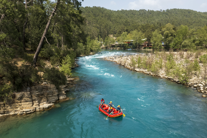튀르키예 래프팅 중심지 코프룰루 캐년/사진=튀르키예 문화관광부 제공 안탈리아는 즐길 거리도 가득하다. 카누를 타고 고대 리키아 유적 위를 지나거나 코프룰루 캐니언(Köprülü Canyon)에서 래프팅을 즐길 수 있다.