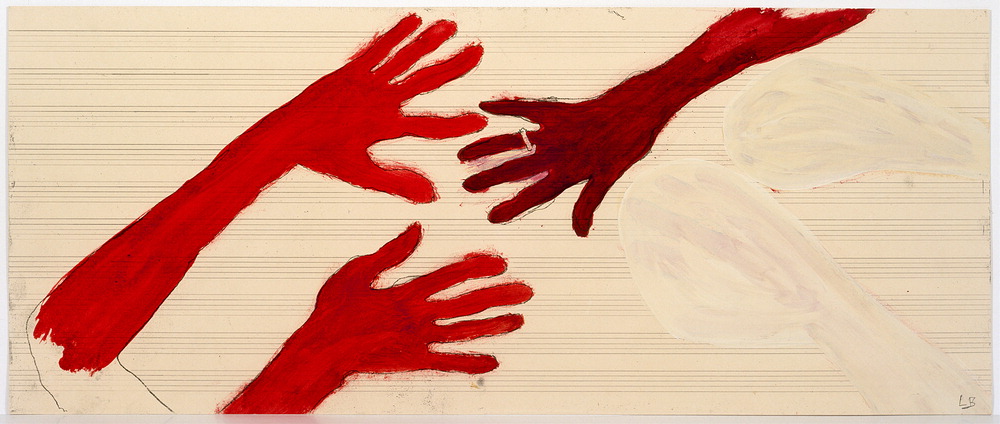조수의 두 손과 자신의 결혼반지를 낀 손을 붉은 구아슈 물감으로 악보 위에 그린 연작 '당신이 오는 시간,오전 10시'(2006년)를 한국에서 만난다. 국제갤러리 K3와 한옥에서 9월 2일부터 10월 26일까지 열리는 부르주아의 개인전 'Rocking to Infinity'를 통해서다. 이번 전시는 부르주아가 생애 후반 20여 년에 걸쳐 작업한 조각과 드로잉을 선보인다. 호암미술관 개인전과 함께 보면 좋은 전시다.