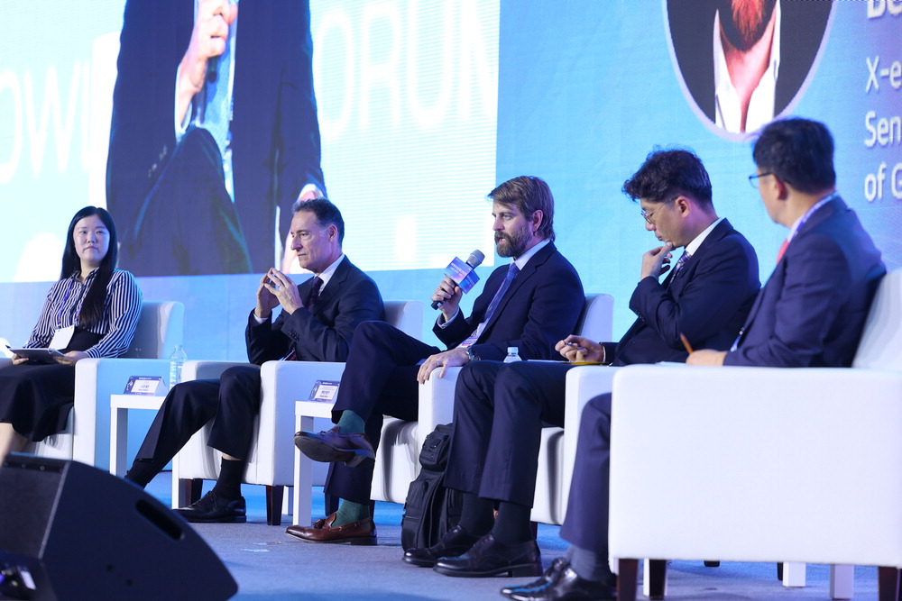 11일 경북 경주시 더케이호텔에서 열린 '세계지식포럼 2025 with APEC 경북'에서 벤저민 라잉키 엑스에너지 글로벌 비즈니스 개발 수석부사장(가운데)이 소형모듈원전(SMR) 생태계 조성 전략에 관해 설명하고 있다. 특별취재팀