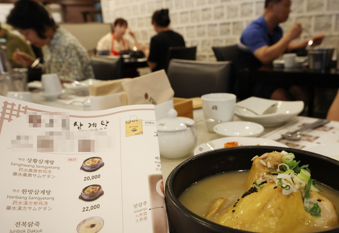 삼계탕 가격은 지난 2022년 8월 1만5462원에서 2023년 1월 1만6000원,지난해 7월 1만7000원선을 넘었고 지난달 1만8000원으로 오르면서 3년 동안 평균 2500원이 뛰었다.
