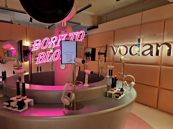 보다나는 19일부터 21일까지 3일간 가수가 무대에 오르기 전까지의 과정을 경험할 수 있는 ‘본 투 블로우(Born to Blow)’ 콘셉트의 팝업 스토어를 진행한다. [김혜진 기자] “블랙핑크 제니가 되어 볼 수 있는 공간이에요. 마지막에 화려하게 데뷔하시면 됩니다.”19일 국내 대표 헤어 스타일링 브랜드 보다나가 서울 성수동에 연 팝업스토어 매장에 들어서자 대기 중인 직원이 이같이 말했다.보다나는 오는 21일까지 3일간 가수가 무대에 오르기 전까지의 과정을 경험할 수 있는 ‘본 투 블로우(Born to Blow)’ 콘셉트의 팝업 매장을 운영한다.팝업이 열리고 있는 건물은 멀리서부터 분홍빛 스팽글 장식 입구가 눈길을 사로 잡았다. 내부는 보다나 시그니처 컬러인 분홍색 인테리어가 특징이다.블랙핑크 제니 등 K팝 아이돌의 하루를 모티브로 구성된 이번 팝업은 방문객이 직접 녹음실,백스테이지,데뷔 무대 등을 거친다. 특히 무대에 오르기 전 스타일링 공간인 백스테이지에서는 보다나의 다양한 제품을 체험할 수 있다.먼저 방문객은 나만의 ID 카드를 제작해야 한다. 키오스크에서 사진을 촬영한 뒤,자신의 모습을 닮은 인공지능(AI) 캐릭터를 생성해 실물 ID 카드에 담을 수 있다. 동선을 따라 녹음실로 이동하면 이달 출시된 보다나의 신제품 ‘글래어 스타일러 폴드’의 기능을 경험해 볼 수 있는 공간이 마련되어 있다.보다나는 19일부터 21일까지 3일간 가수가 무대에 오르기 전까지의 과정을 경험할 수 있는 ‘본 투 블로우(Born to Blow)’ 콘셉트의 팝업 스토어를 진행한다. [김혜진 기자] 글래어 스타일러 폴드는 포터블 모드,드라이어 모드,스타일러 모드 등 세 가지 형태로 전환 가능한 제품으로 네 가지 노즐을 활용해 볼륨,스트레이트,웨이브 등 다양한 스타일링을 연출할 수 있는 올인원 헤어 스타일러다.백스테이지 공간에서는 ‘글래어 스타일러 폴드’뿐만 아니라 ‘글로우 물결 고데기’,‘이지 업 헤어스타일러’ 등 보다나의 베스트셀러 제품이 준비돼 있다. 마지막으로 메인 스테이지에는 완성한 스타일링을 뽐낼 수 있다. 무대 위 스탠딩 마이크를 활용해 실제 K팝 아이돌이 된 듯한 체험을 즐길 수 있다.보다나는 19일부터 21일까지 3일간 가수가 무대에 오르기 전까지의 과정을 경험할 수 있는 ‘본 투 블로우(Born to Blow)’ 콘셉트의 팝업 스토어를 진행한다. [김혜진 기자] 이번 행사는 보다나의 첫 단독 팝업 스토어다. 보다나 관계자는 “올해 리브랜딩을 진행하면서 하반기에 새로운 제품들을 선보였다”며 “보다나가 달라졌다는 메시지를 전달하고 싶어서 기획하게 됐다”고 설명했다. 2012년 설립된 보다나는 하재금 대표가 지난해 10월 취임한 이후 디자인 역량 강화,제품 개발 고도화를 노력해 왔다.보다나는 글로벌 시장 공략에 속도를 내고 있다. 중국에 지사를 설립한 이후 이커머스를 중심으로 인기를 끌었고,현재 전체 매출 비중의 30%가 중국으로 집계됐다. 보다나 관계자는 “이제 진출을 시작한 일본과 동남아시아 지역에도 제품이 판매가 되고 있다”며 “미국은 아마존에서 먼저 판매한 뒤 오프라인 대형 유통망으로 확대할 계획”이라고 설명했다.보다나는 19일부터 21일까지 3일간 가수가 무대에 오르기 전까지의 과정을 경험할 수 있는 ‘본 투 블로우(Born to Blow)’ 콘셉트의 팝업 스토어를 진행한다. [김혜진 기자] 성수동을 첫 단독 팝업 스토어 장소로 선택한 이유와도 관계가 있다. 성수는 K뷰티와 K컬쳐를 체험하려는 외국인 관광객과 트렌드에 민감한 소비자들이 가장 많이 찾는 곳이다.서울교통공사에 따르면 성수역의 일평균 승하차 인원은 2018년 5만6000여명에서 지난해 8만8059명으로 57% 급증했다. 내국인 방문객은 2018년 대비 31% 늘어 2600만명을 넘어섰고,외국인 관광객은 같은 기간 6만명에서 300만명대로 대폭 늘어났다.남성 및 시니어 고객을 겨냥한 제품군도 강화 중이다. 이 관계자는 “올해 초 충전식 다운펌 기기를 출시했고,이번 글래어 스타일러 폴드 역시 남녀노소 모두 쓸 수 있도록 기획했다”며 “앞으로도 다양한 소비자층을 고려한 제품을 꾸준히 선보일 것”이라고 말했다.