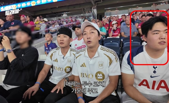 관중석에 나란히 앉은 신규진과 탁재훈 옆에는 건장한 체격의 한국인 남성 한 명이 함께 해 눈길을 모았다. 영상에서는 그에 대한 별다른 설명을 곁들이지 않았으나 업계 확인 결과,탁재훈의 아들 배유단 군(24)으로 알려졌다. 그는 이날 손흥민의 전 소속팀인 토트넘 홋스퍼 유니폼을 입고 있었으며 경기에 몰입한 모습이었다.