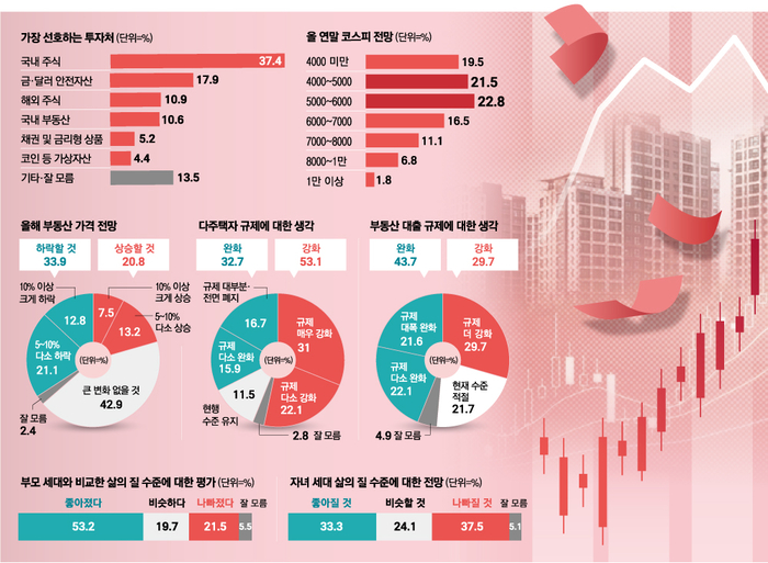 국민 투자 인식이 부동산에서 국내 증시로 이동하고 있으며,경제 구조 변화 속에서 미래에 대한 기대와 불안이 동시에 커지고 있다. [사진 = 연합뉴스] 매일경제가 창간 60주년을 맞아 실시한 국민 경제인식 조사에서 확 달라진 투자 지형도가 드러났다. 큰 틀에서 보면 부동산에서 증시로 ‘머니 무브’가 뚜렷하다.
