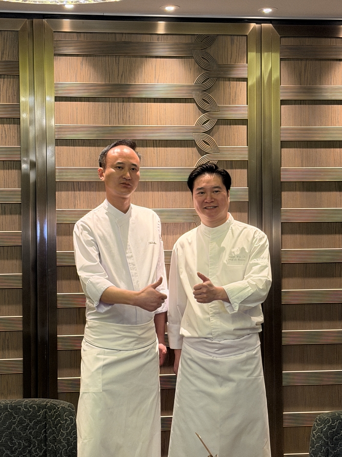 슈 펑 차오 셰프와 토 콱 웨이 셰프. /사진= 강예신 여행+ 기자 ​토 콱 웨이 유유안 셰프는 “서울과 다롄은 기후는 다르지만 제철 재료의 본질을 살린다는 미식적 뿌리는 같다”며 “이번 협업을 통해 같은 광둥 요리 안에서도 도시의 리듬에 따라 얼마나 다채로운 결이 생겨나는지 보여주고 싶었다”고 말했다.