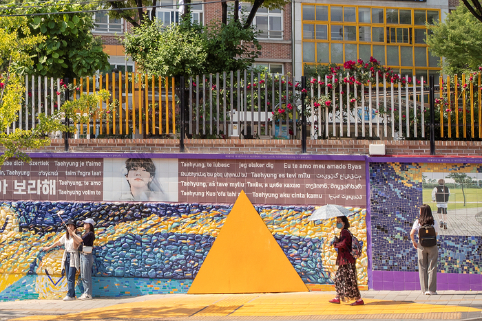뷔 벽화거리는 서구 비산동 대성초등학교 담장에 조성돼 있다. 해당 벽화는 2021년 12월 중국 팬클럽이 약 3000만원을 들여 조성했으며,이듬해 서구가 3700만원을 추가 투입해 확장했다. 남구 ‘슈가 벽화거리’는 과거 슈가의 작업실이 있던 골목을 따라 10여 개 벽화가 이어져 있다. 이곳은 2022년 팬들의 요청을 대구전통시장진흥재단과 상인회가 받아들이며 조성됐다.